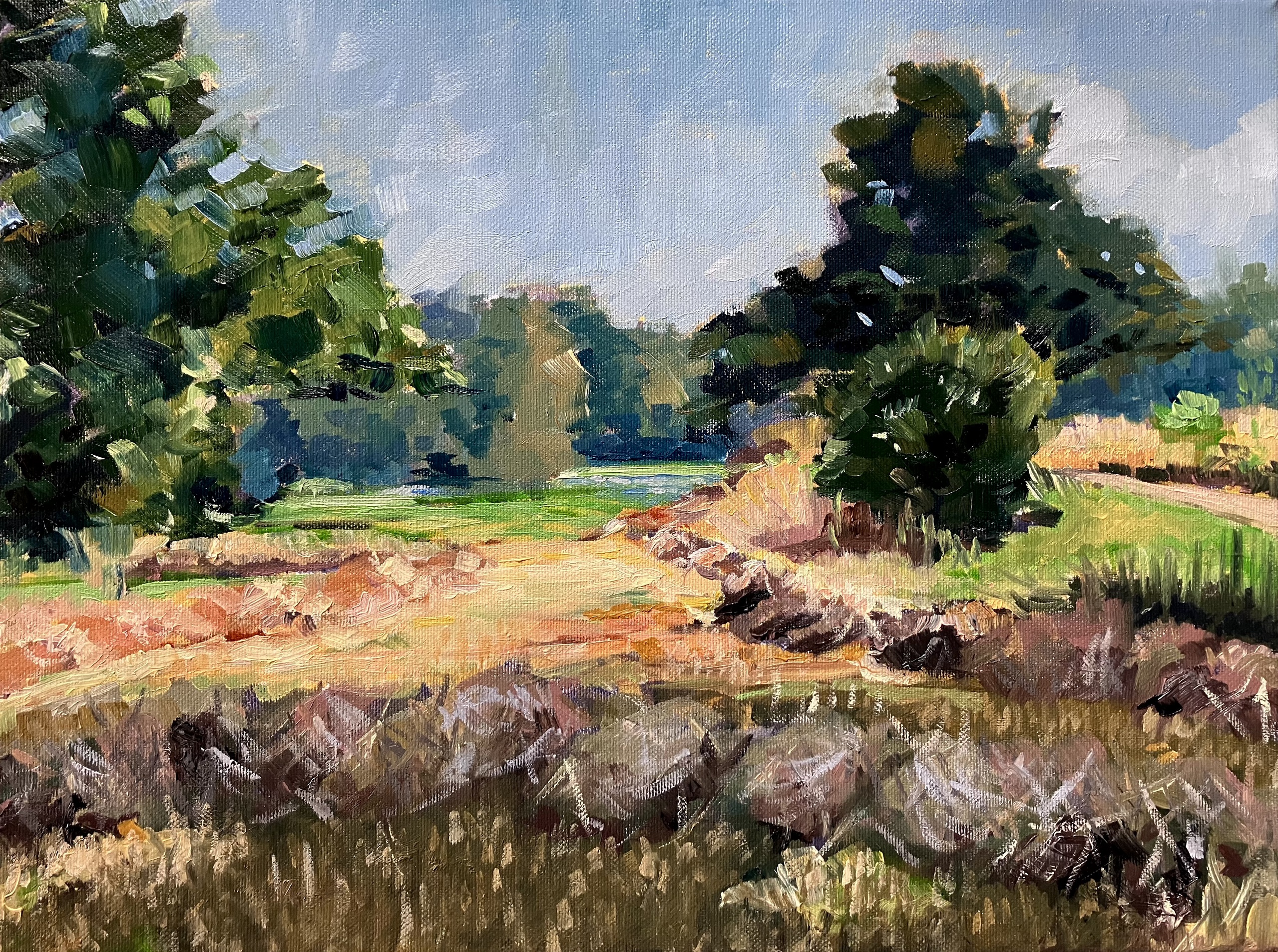 Landschap, impressies daarvan ,stille plekken waar ik graag was, af en toe een stilleven. Meestal in olieverf, soms aquarel. Kleur is waar ik van hou.