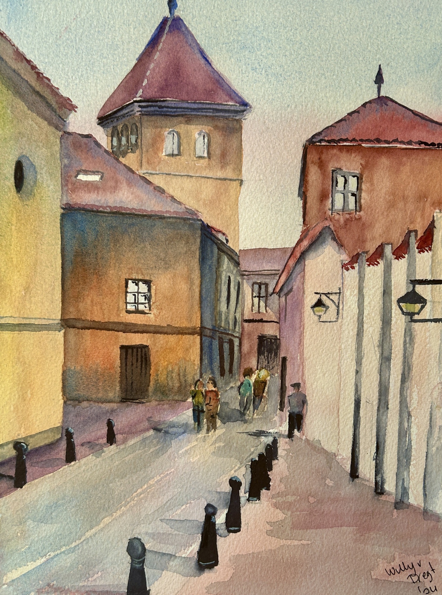 Kleurrijk Aquarel Watercolor Stad Stadsgezicht City Ubeda