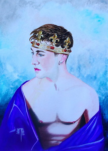second portrait of my model Micha ( 2025) in aquarel and gouache on cottonpaper. 43x28cm ,in passe partout 60x50