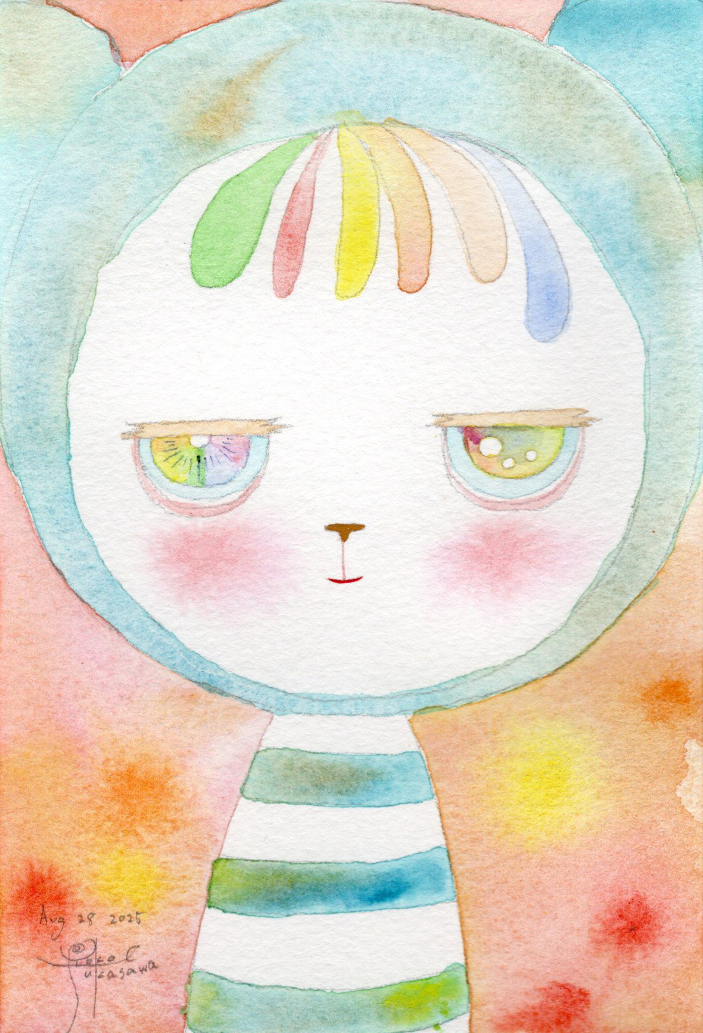 Yoko Fukasawa was born in 1982. 2001-Japan traditional craft department,Metal crafts major 2001-Volkswagen new Beetle - art contest The third place. 2002-TOKYO DOME - Tableware festival Fine work. 2017-And Schizophrenia has been revealed. Her paintings are outsider art. They are characterized by simple shapes and bright colors. She wants you to look at them and relax.