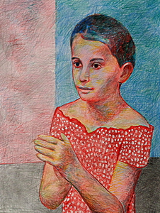 Werkt voornamelijk met Acrylverf, potlood en inkt. Is autodidakt.