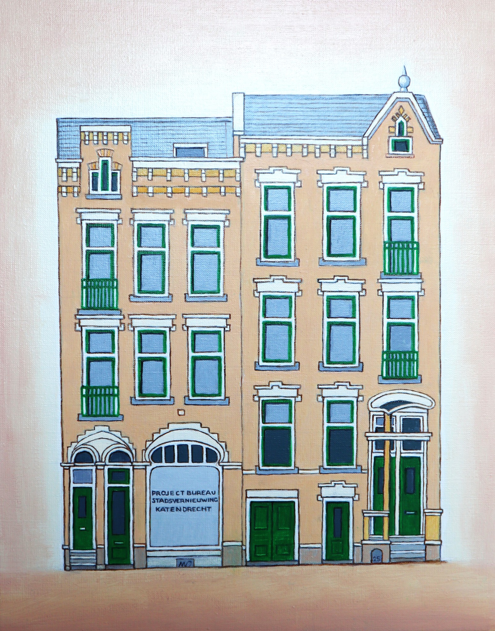 Mijn schilderijen bestaan uit gebouwen en mensen.