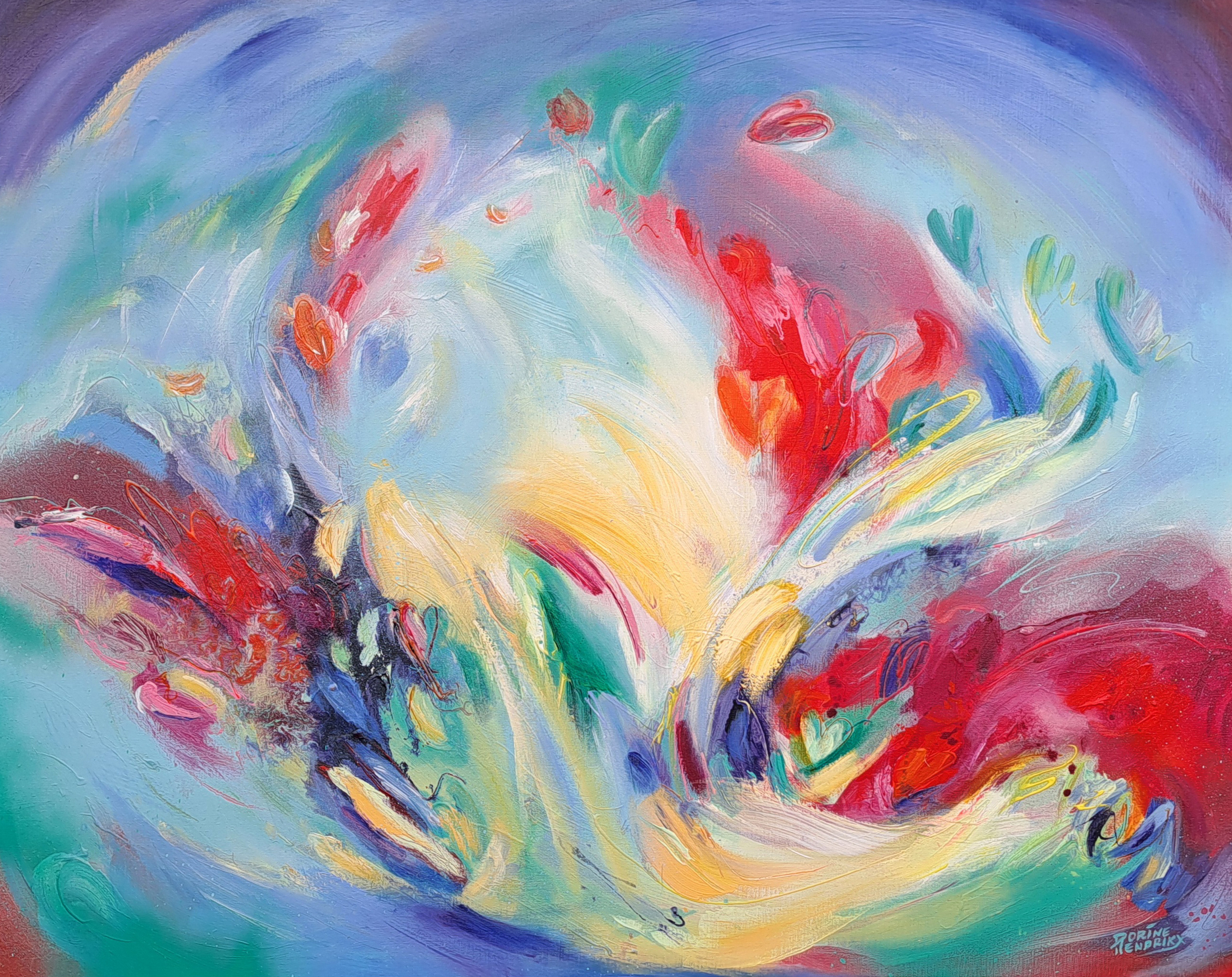 Mijn abstracte, expressieve schilderijen vormen een twee-eenheid met steeds een bijzondere edelsteen. Kleur, vorm en energie worden intuïtief door mij vertaald en expressief op het doek gezet.