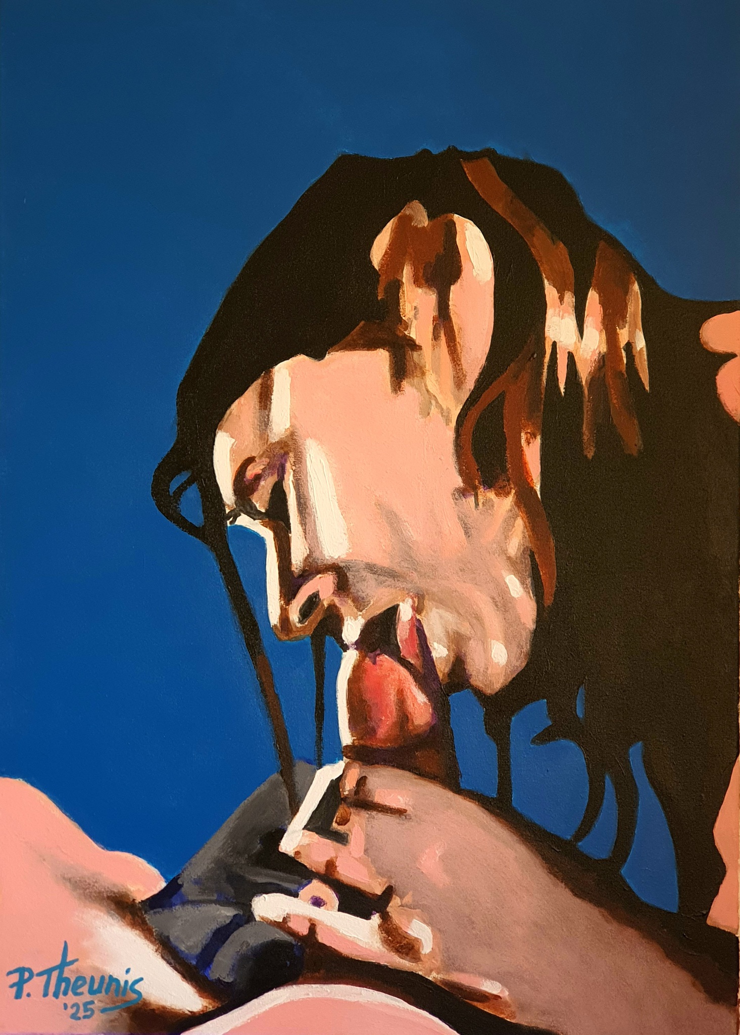 Een expliciet werk waarbij vele vragen gesteld kunnen worden.. Iets persoonlijk? Schoonheid of vulgair? Het is aan de toeschouwer om deze op zijn eigen manier in te vullen...