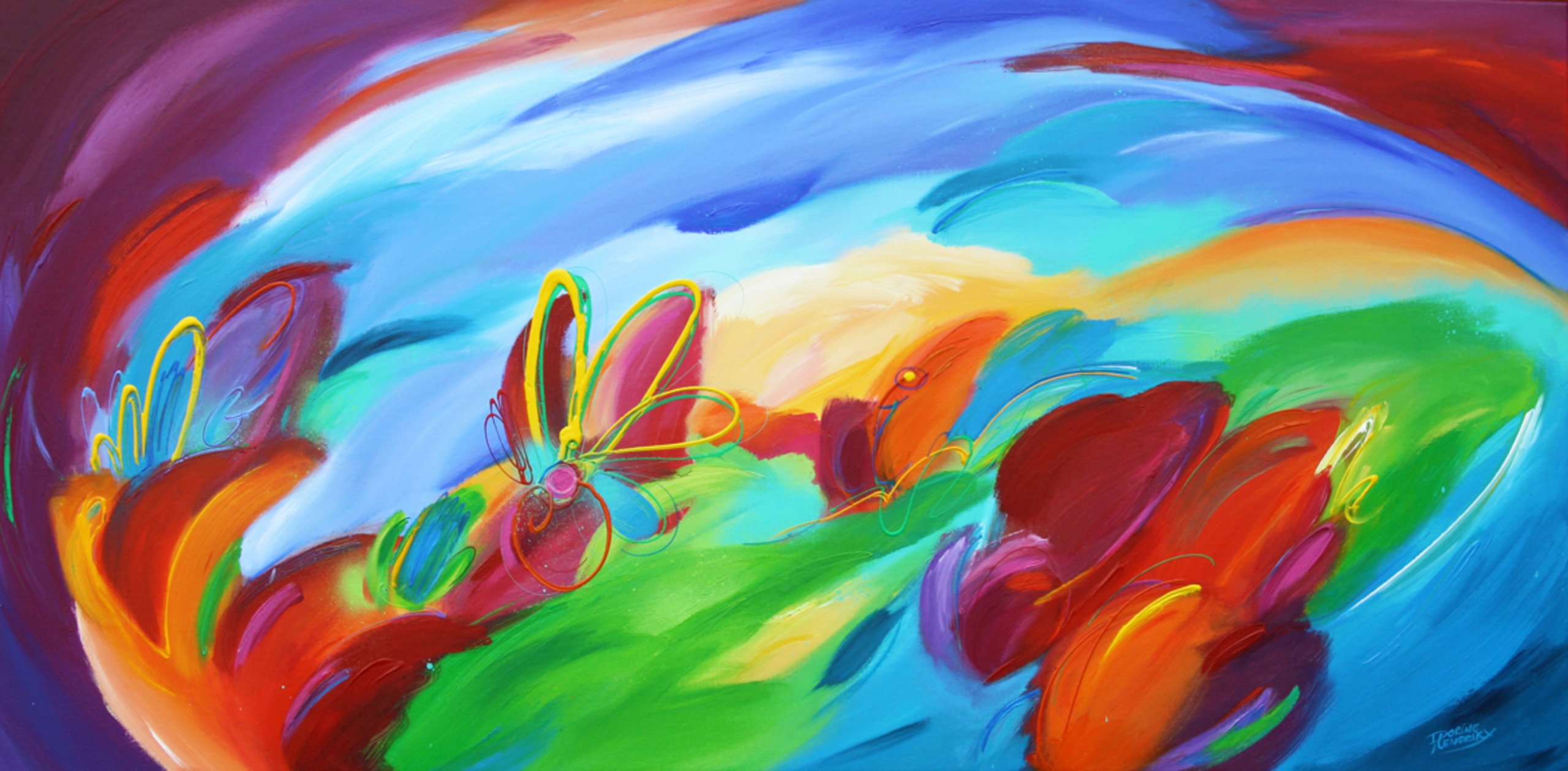 Flowering is een kleurrijk en expressief abstract schilderij, waarin bloemvormen en dynamische lijnen samenkomen in een levendige compositie. De explosie aan kleur voelt spontaan, maar is zorgvuldig in balans gebracht. Het werk straalt energie, groei en bloei uit.