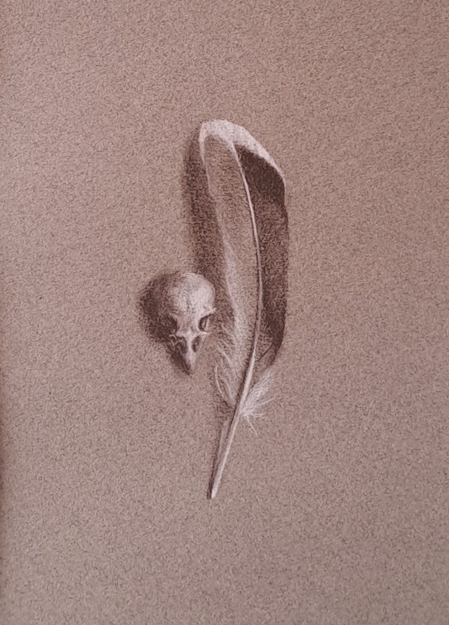 Krijt Realistisch Tekening Eendenveer Duivenschedel Schedel