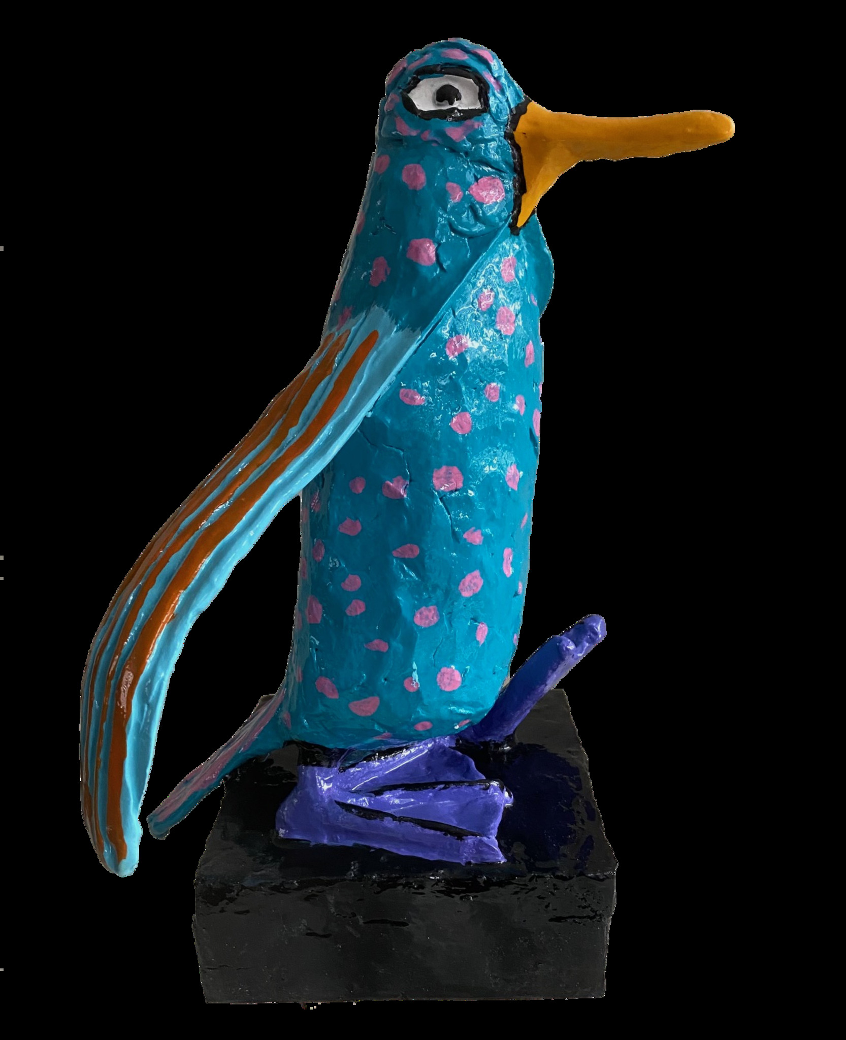 Pim van Pelt maakt vrolijke, kleurrijke en betaalbare kunst. Mensen een glimlach ontlokken is het doel. Het materiaal: keramiplast, acryl en afgewerkt met meerdere lagen epoxie.