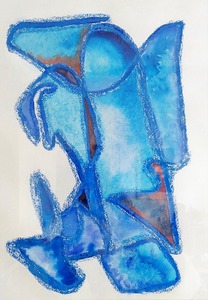 De voorstelling op dit schilderij is ontstaan met gebruik van de frottage techniek. Frottage komt van het Franse werkwoord frotter (= wrijven). Het schilderij ontstaat als een abstract. De bedoeling is om vormen te zoeken en die vervolgens met waterachtige acrylverf verder uit te werken. Ik was best wel blij met het resultaat. Erg leuk om te doen en mocht iemand geinteresseerd zijn, ik heb een beschrijving van het hele proces.