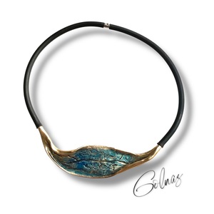 Bronzen sieraad in de vorm van een blad aan spang van rubber