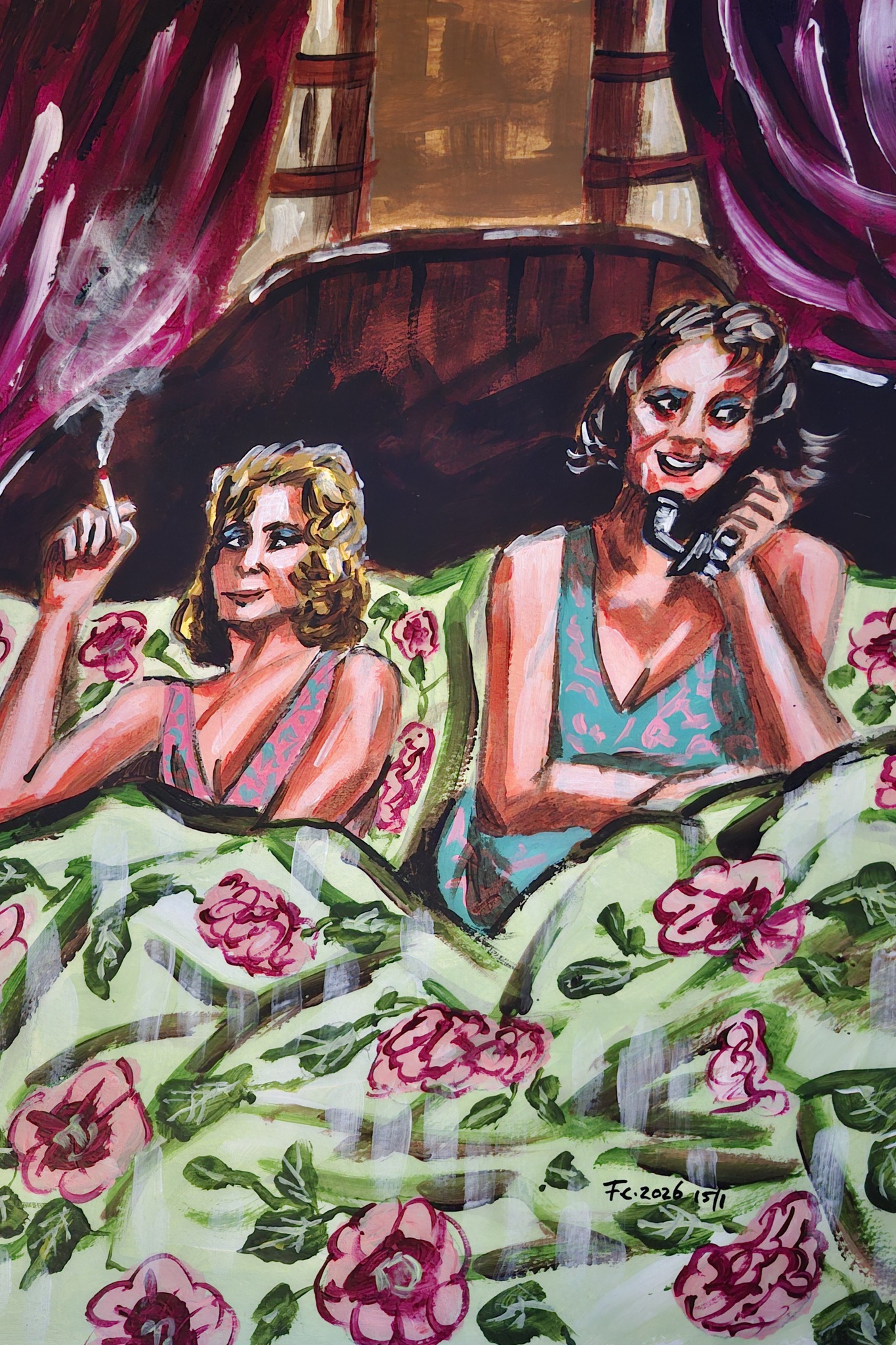 Vriendinnen Bed Telefoneren Logeren Filmscene Actrices Film Movie
