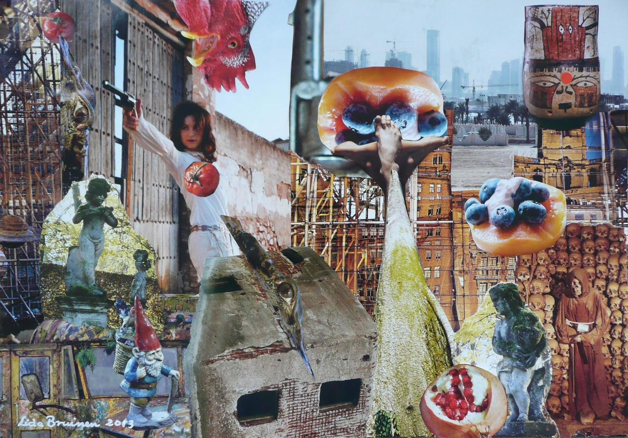 Collage met vervreemdende elementen. Een sfeer van materieel en moreel verval.