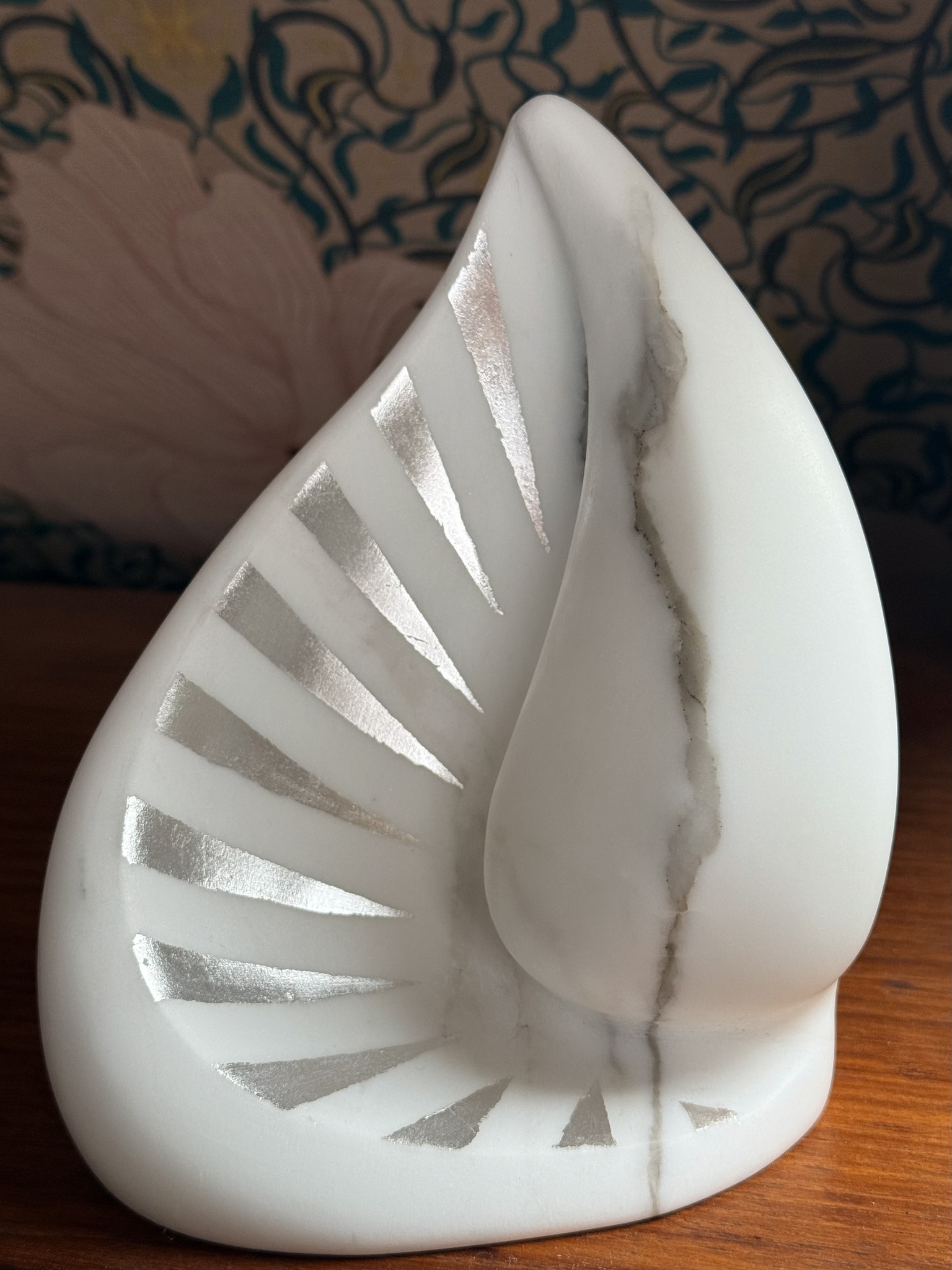Beeld van marmer met bladzilver.