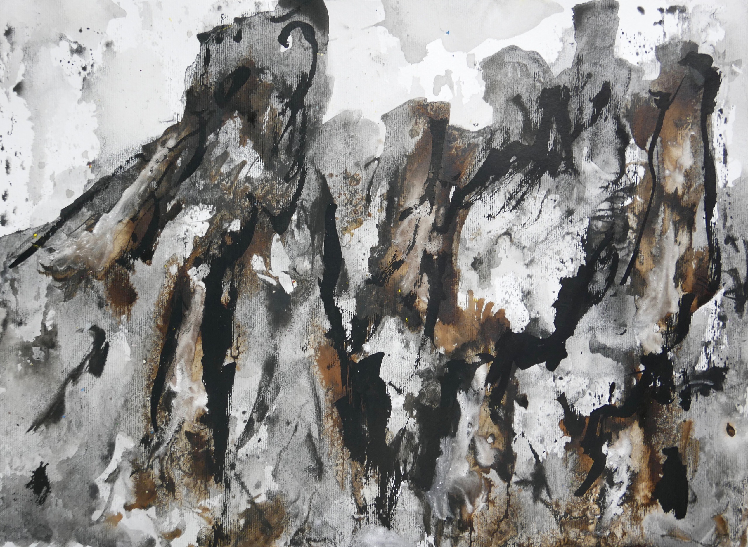 pigment, inkt, sumi-e op papier - geïnspireerd door de Japanse landschapsschilderkunst