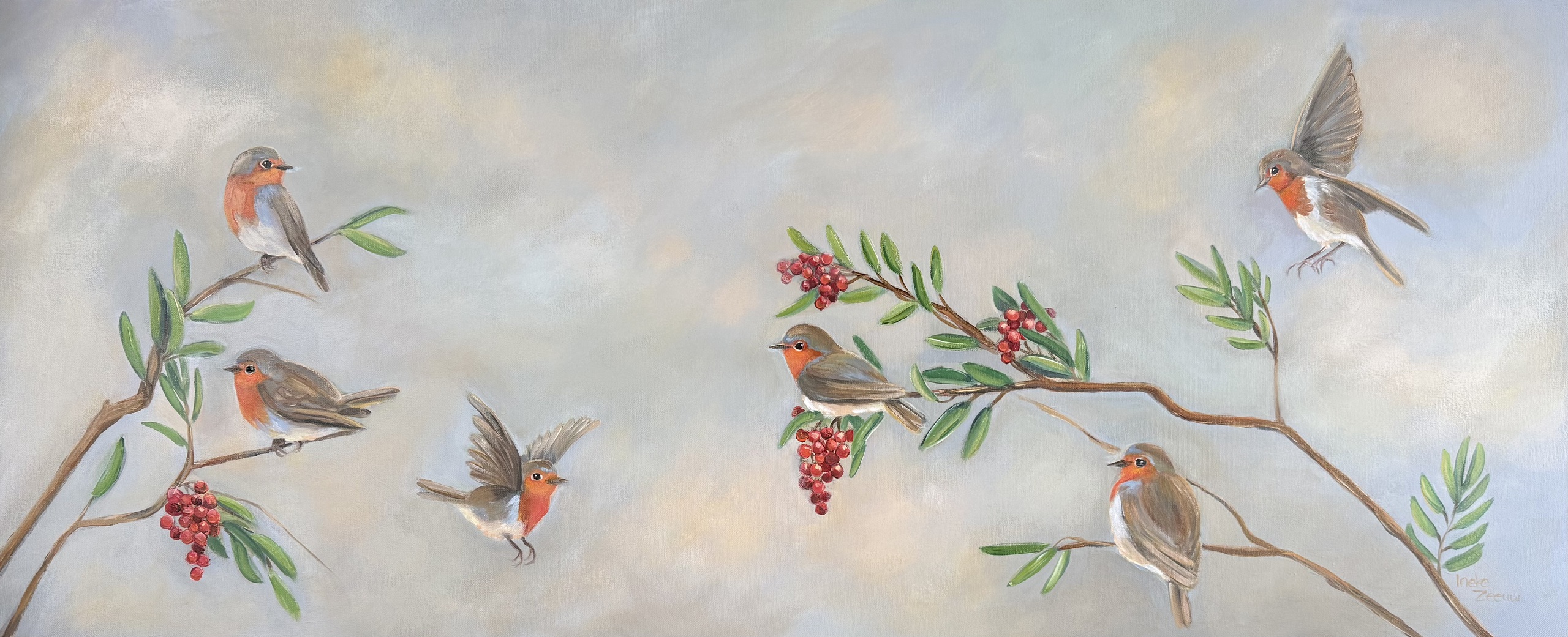 Wat een rijkdom iedere dag te kunnen schilderen. Regelmatig krijg ik nieuwe inzichten en nieuwe ideeën. Het kan altijd beter mooier of spannender. Nog steeds zoekende maar ik geniet van het proces.
