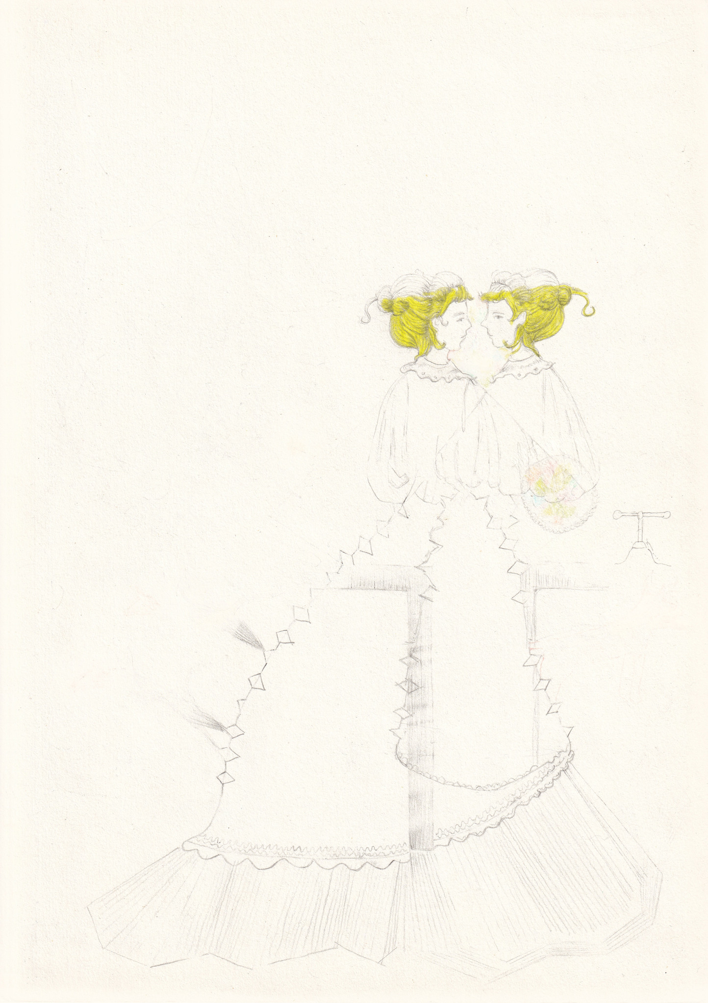 Aquarelpotlood en kleurpotlood op papier