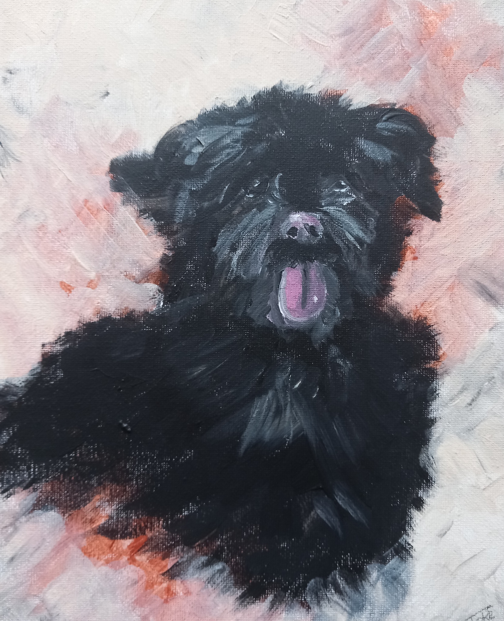 Zwart Klein Ogen Realistisch Acrylverf Hond Tong Haren