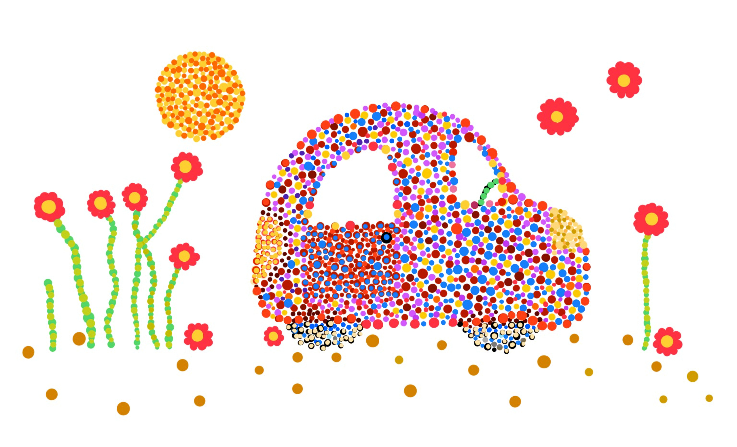De kunstenaar is geïnspireerd door de kunststroming Pointillisme. Door op de kleuren afwisselend stippen en lijnen aan te brengen, creëert Studio Spanjersberg een harmonisch geheel.