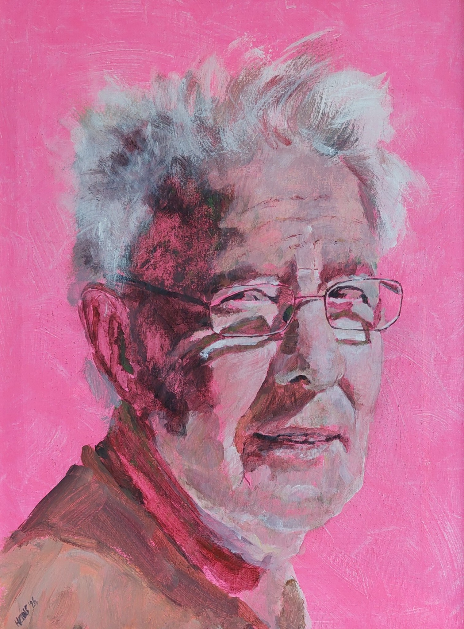Portret met fluo-roze achtergrond