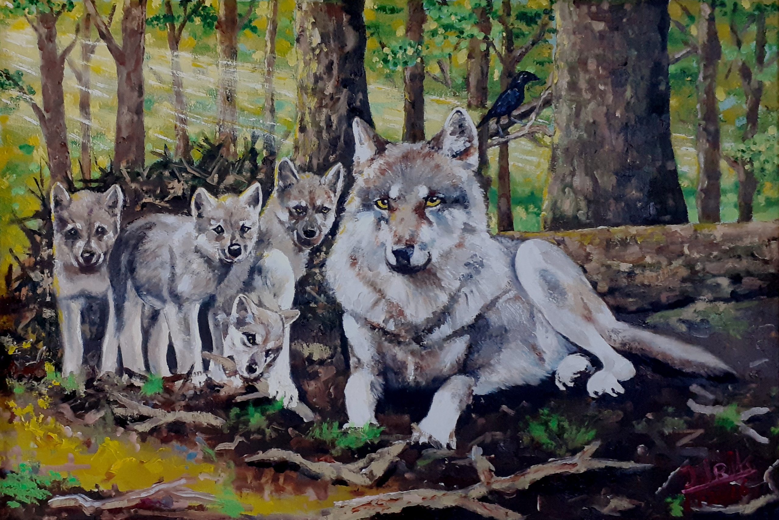 Moederwolf met pups.