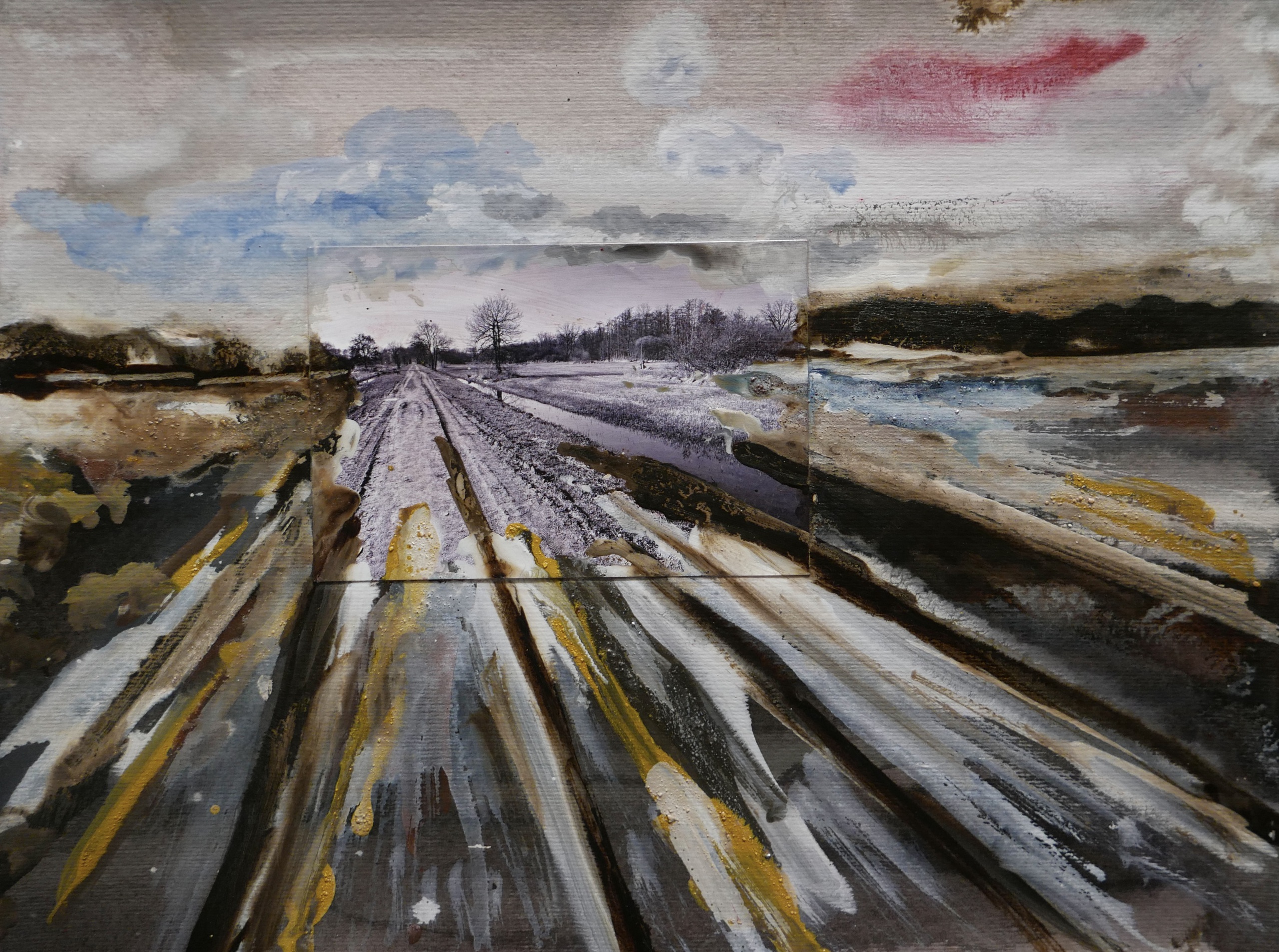 landschap met foto als uitgangspunt Bruuk Groesbeek 30x40 cm - een serie van 16 werken - pigment, sumi-e en inkt op papier - vernis - maart 2026