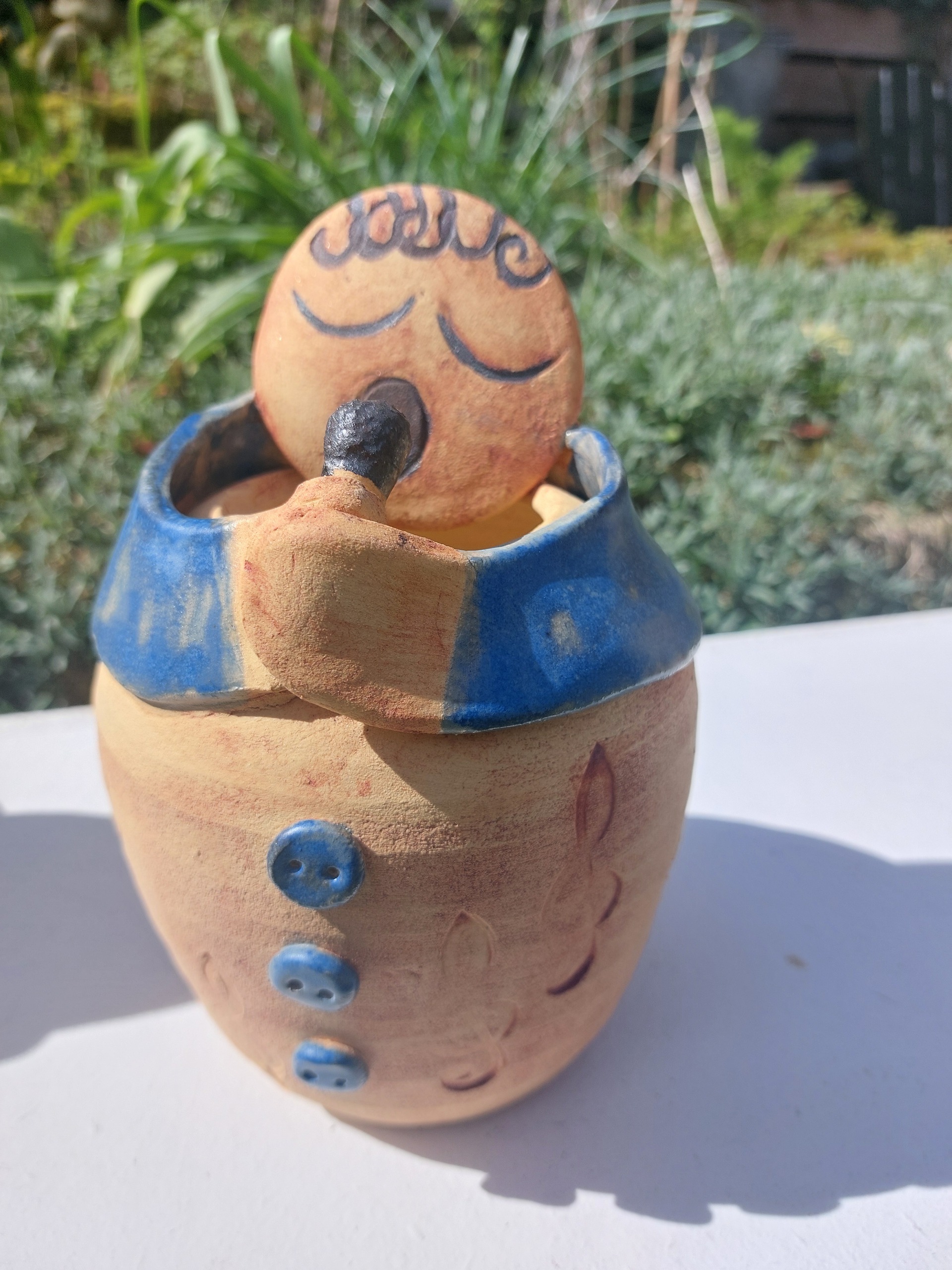 Jacqueline maakt mensfiguren, dieren, urnen, vazen en bloemen van keramiek. Het glazuren en Raku stoken is altijd weer een verassing!