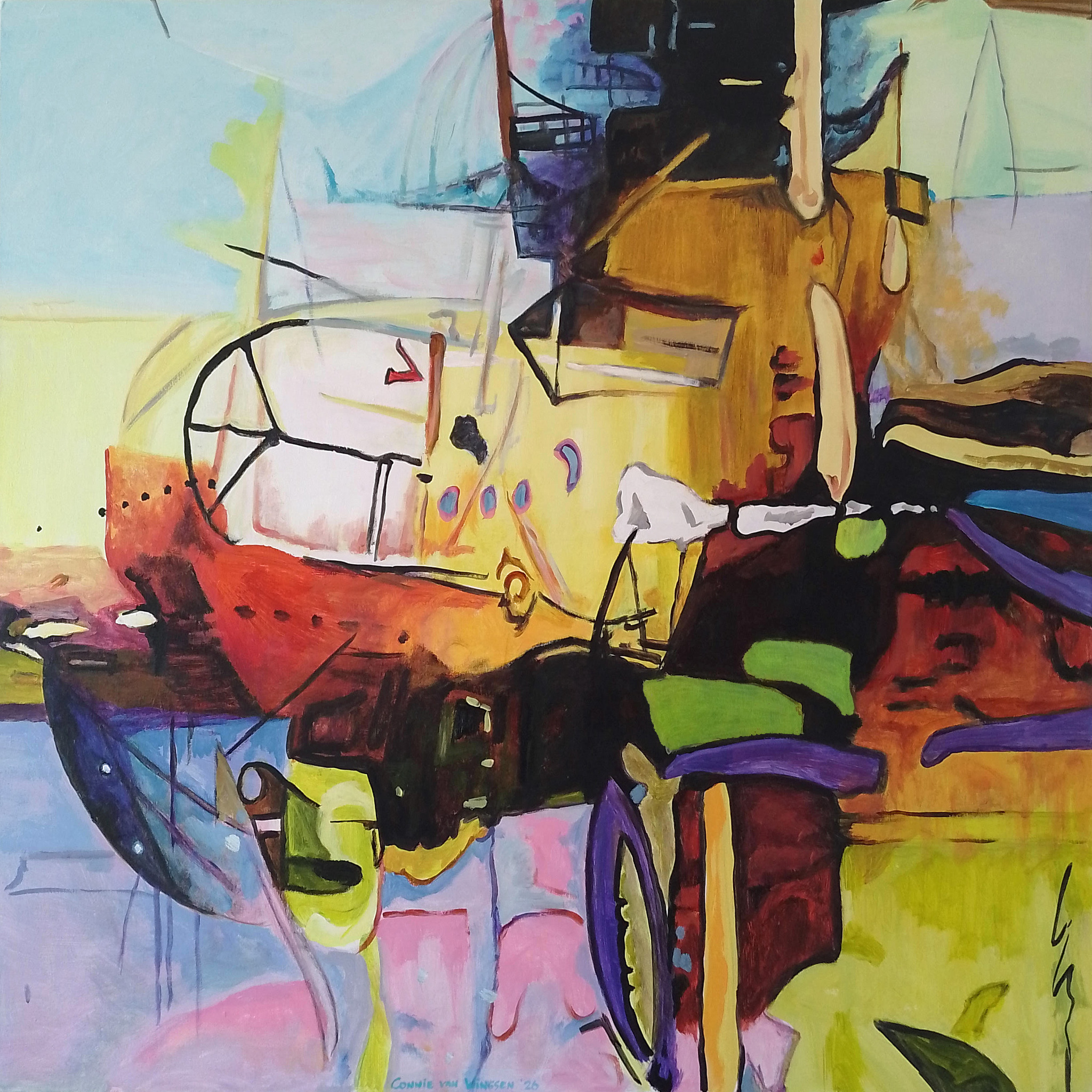 Connie maakt krachtige, kleurrijke schilderijen in acryl, zowel figuratief (mensen, dieren, landschappen en bloemen) als abstract