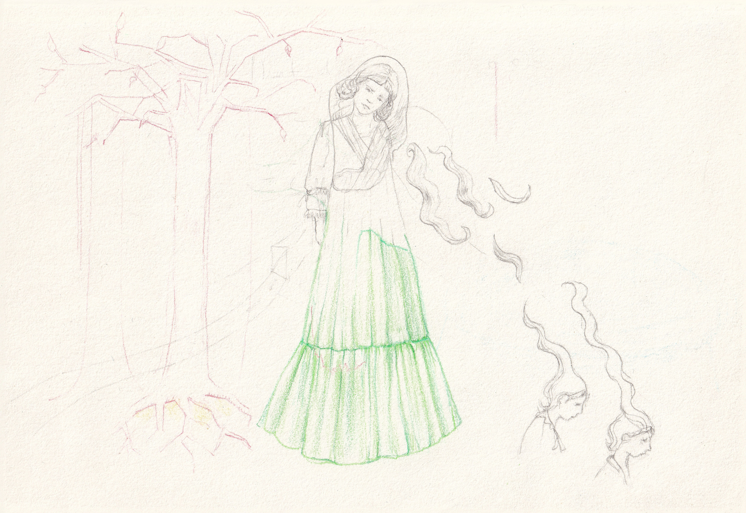 Aquarelpotlood en kleurpotlood op papier