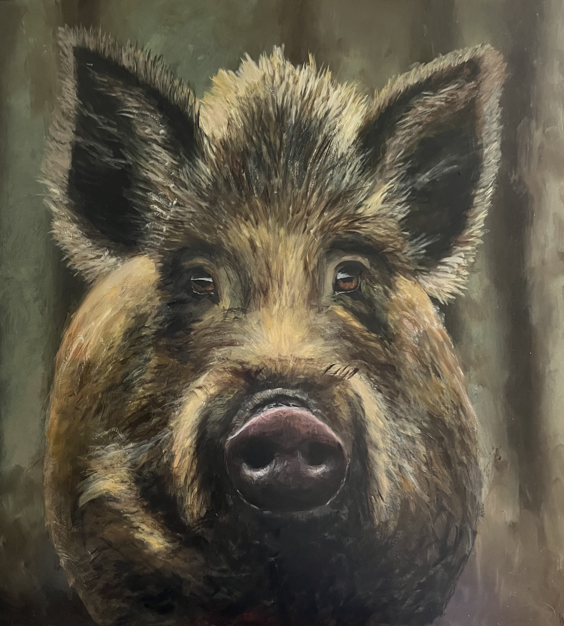 Wild zwijn 🐗 olieverf op paneel met zwarte baklijst 50x50cm