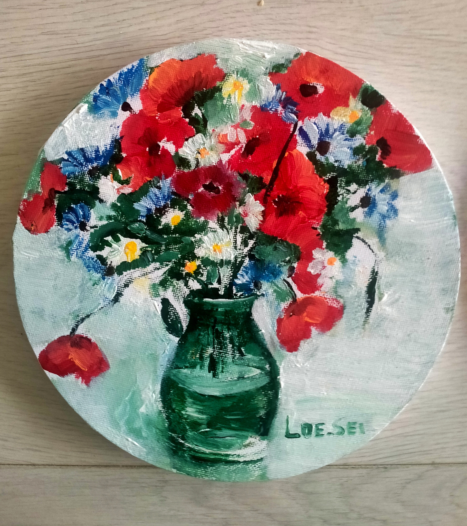 Loe-Sei schildert op grote doeken en heeft een kleurrijke, losse stijl. Het werk is impressionistisch te noemen. Zij is geboren in Eindhoven in 1947 . Grote doeken met vooral bloemen