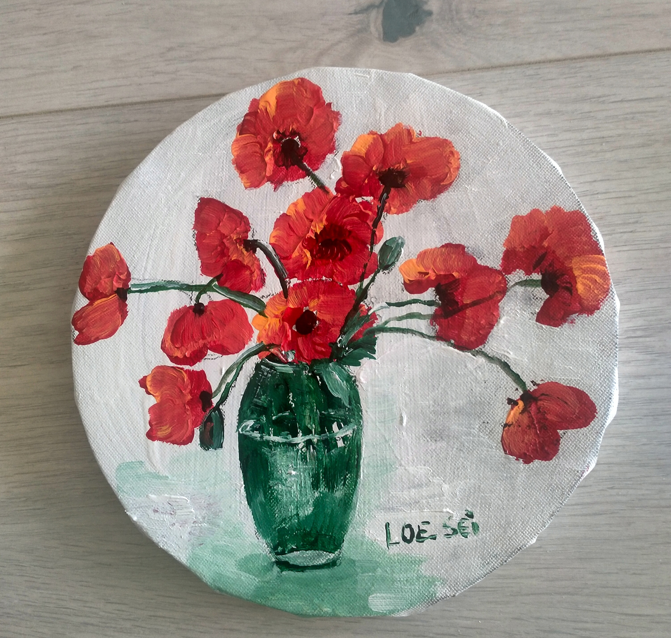Loe-Sei schildert op grote doeken en heeft een kleurrijke, losse stijl. Het werk is impressionistisch te noemen. Zij is geboren in Eindhoven in 1947 . Grote doeken met vooral bloemen
