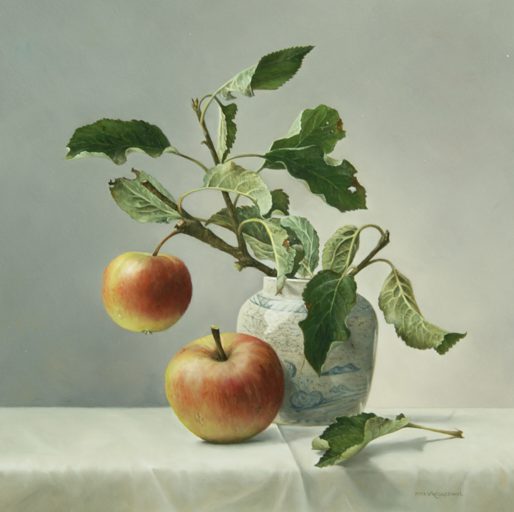 Stilleven Olieverf Paneel Realistisch Realisme Schilderij Te Koop Beschikbaar Art Kunst Elstar Appel Gemberpotje