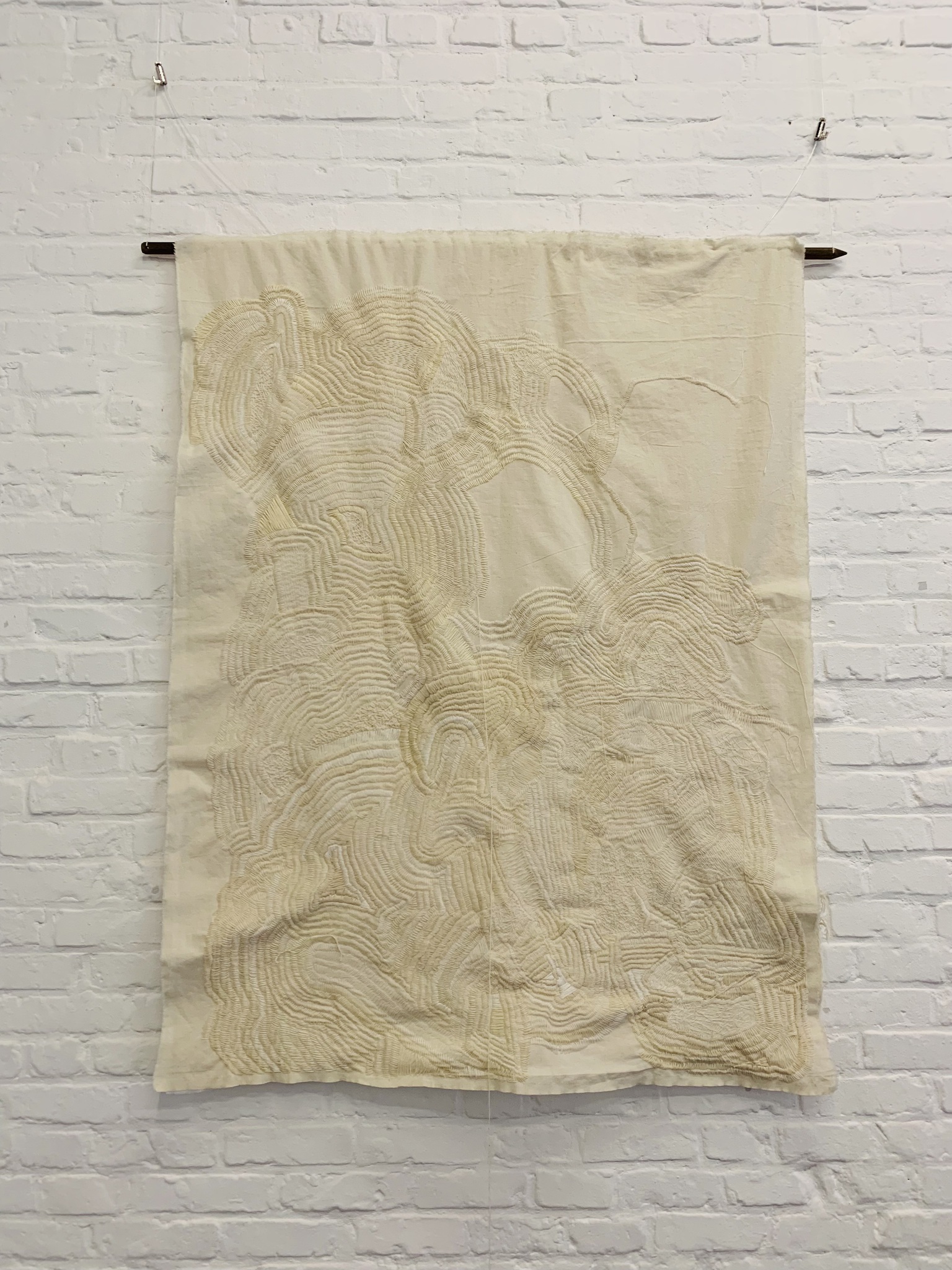 Invisible Scars’ als thema; deze werken draaien rond het verwerken van herinneringen, onzichtbare littekens, momentopnamens en de onvoorspelbaarheid van lichaam en geest. Door de repetitieve handeling van het borduren, weven en wikkelenkan je externe prikkels uitschakelen. Door deze vorm van meditatie wordt het werk vertaald naar mijn verhaal en kan de toeschouwer mee op onderzoek gaan.
