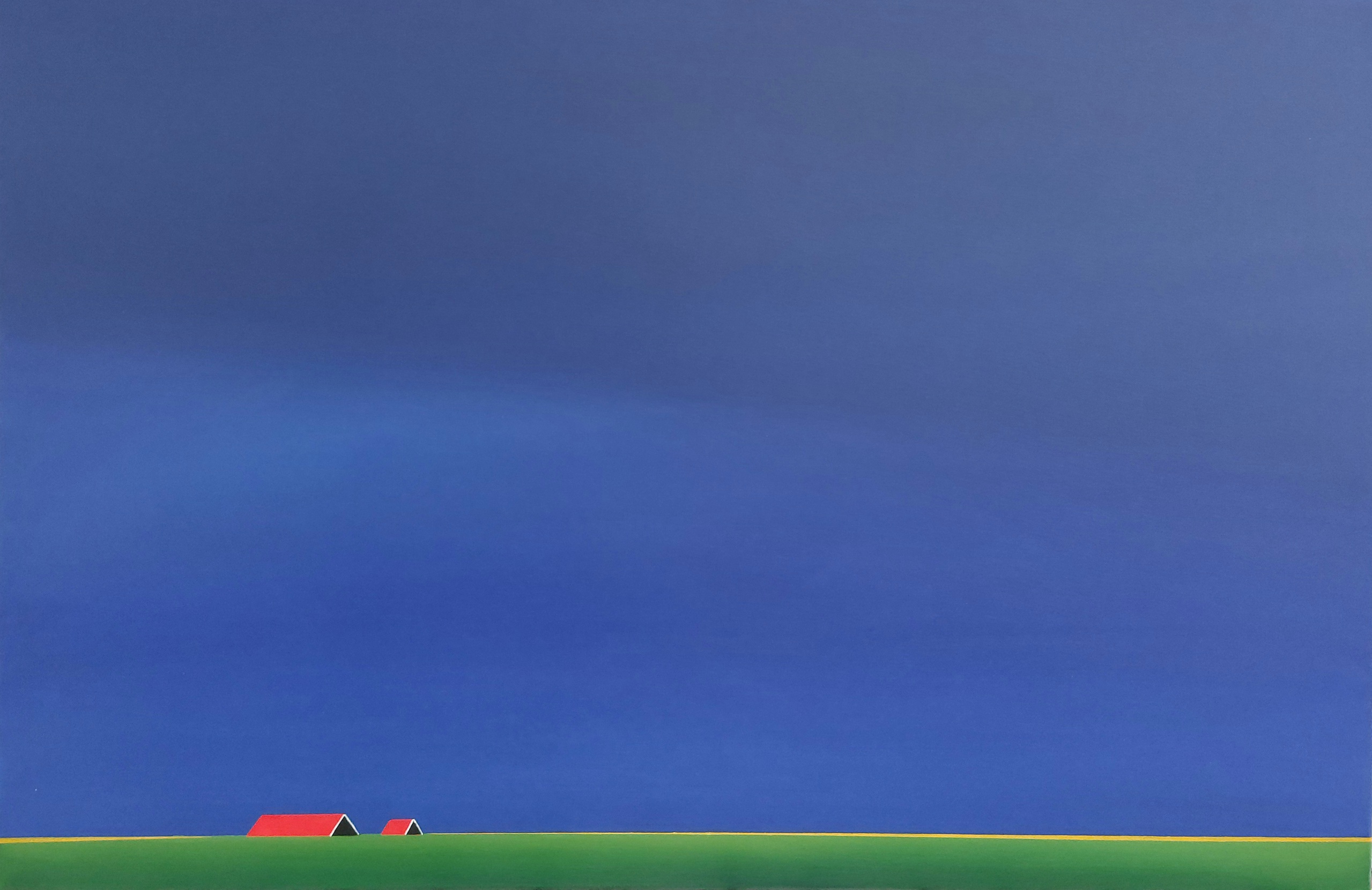 Polder Zeeland Blauw Groen Geel Minimalisme Schilderij Groot Horizon Rode Daken Mondriaan Yves Klein