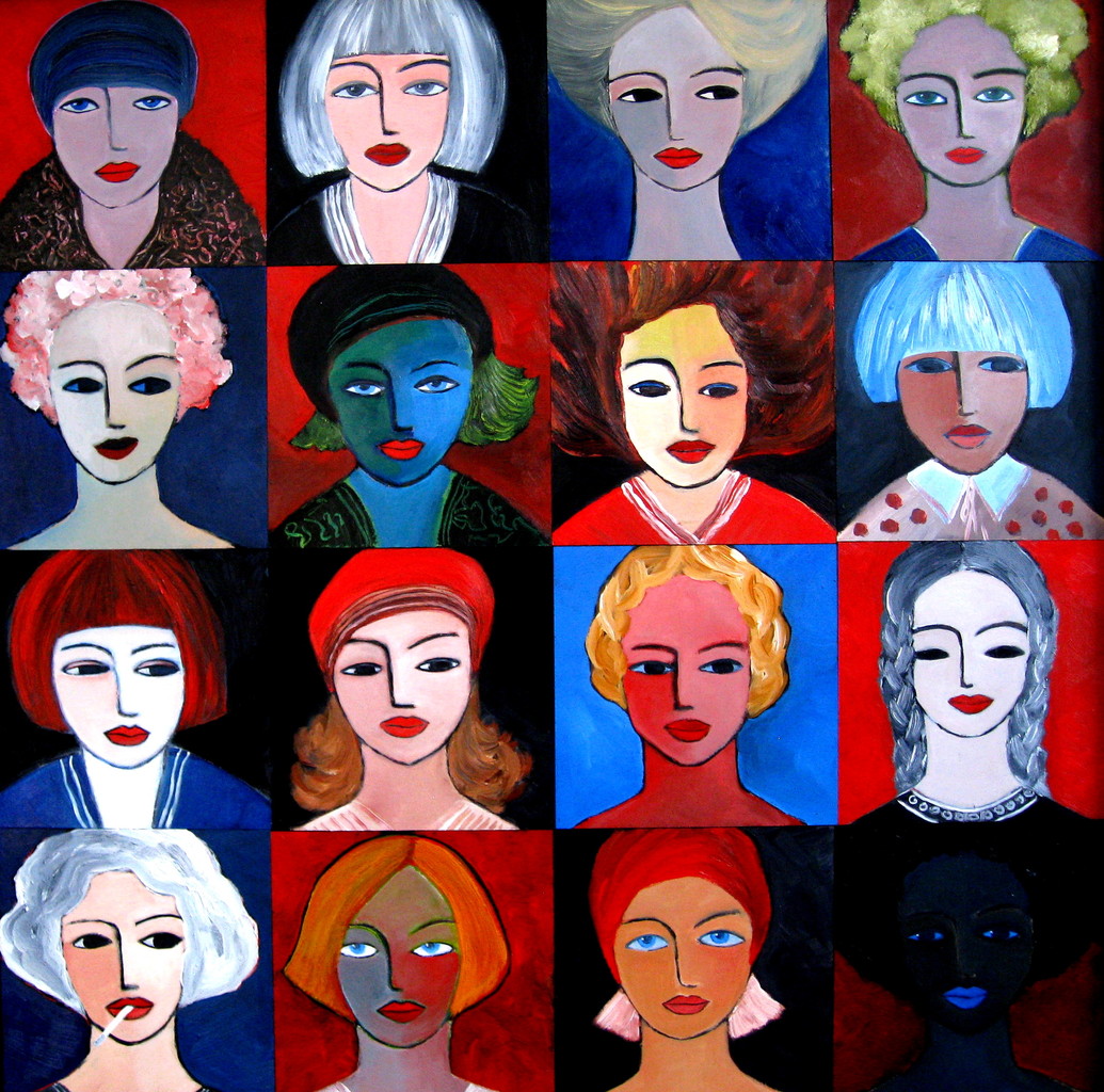 Schilderij Portret Kleurrijk Collage Meisjes Colorful Portraits Ladies Paneeltjes Females