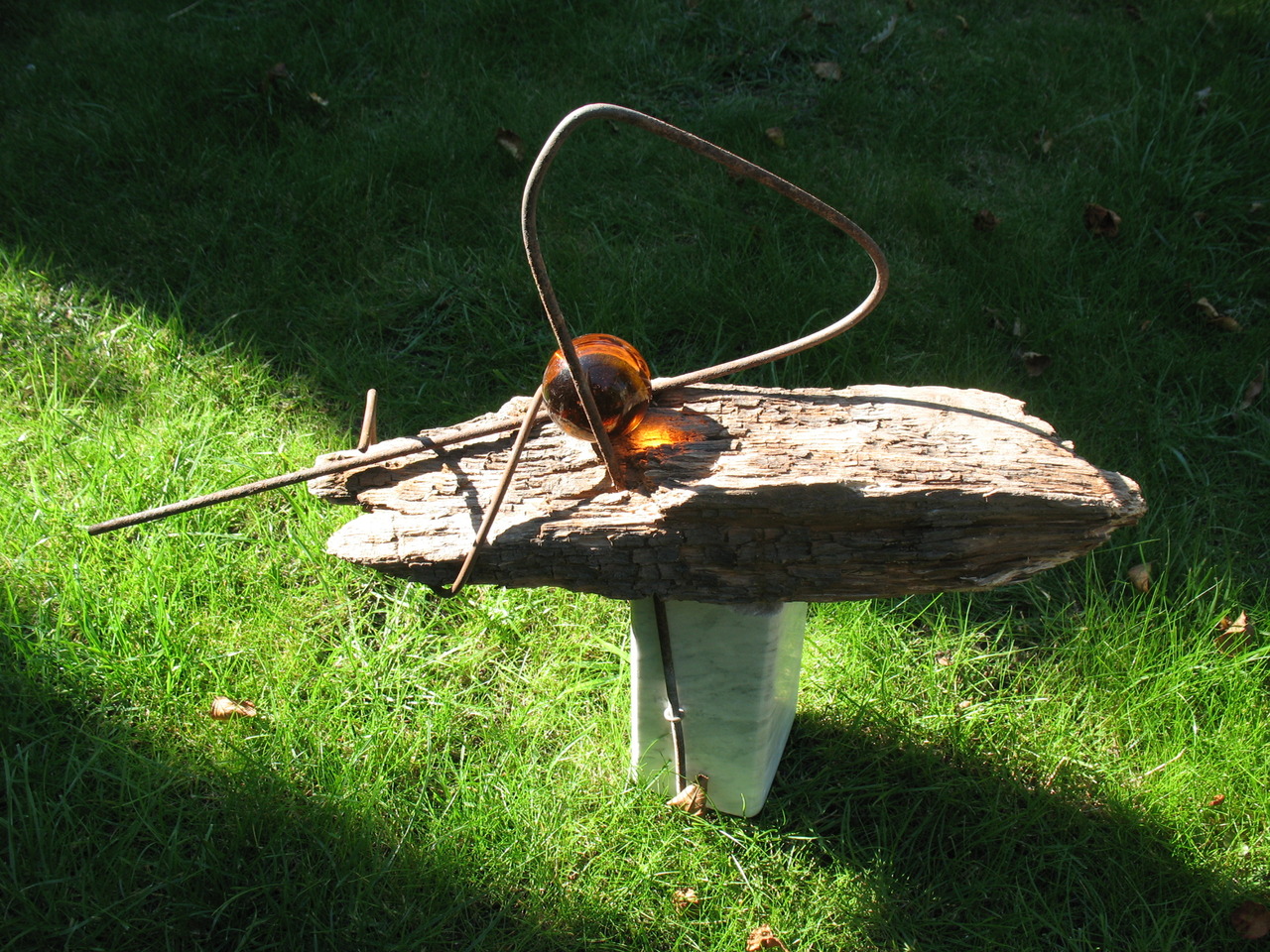 Als kind leerde ik op school dat de Krim de parel was van de Zwarte Zee vanwege de mooie natuur en kusten, vergelijkbaar met de Franse Rivièra. In 2012 voer ik 's avonds laat met een cruiseboot vanuit Odessa in Oekraïne de Zwarte Zee op richting de Krim, alles vredig en rustig om mij heen. In Kiev was de viering van de onafhankelijkheid in volle gang op het Maidan plein. In Sebastopol op de Krim flaneerden de jongelui en zongen de ouderen vollksliederen. Inmiddels een land in oorlog en verwoesting. Mijn beeld, samenstelling van gevonden voorwerpen, symboliseert een boot ?, een dier ?, een helder licht centrum met zich mee dragend. Hopelijk op weg naar een vredige toekomst.