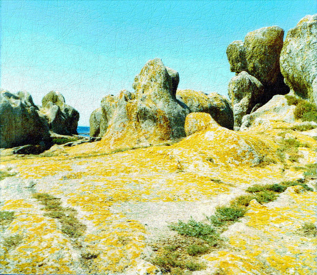 Korstmossen op Bretonse rotsen