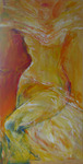Emoties komen tot uitdrukking in poëtische en sensuele figuren. Vooral atmosfeer en kleur zijn sterke elementen in mijn schilderijen.