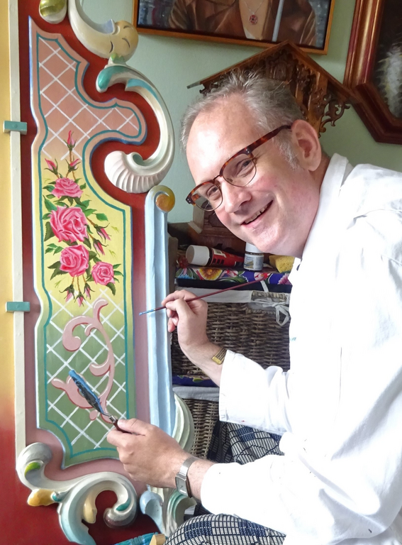 Maarten is geen conceptuele maar een ambachtelijke kunstenaar en maakt schilderijen in een kleurrijke, toegankelijke stijl. Daarnaast verricht hij decoratiewerk aan bijv. draaiorgelfronten.