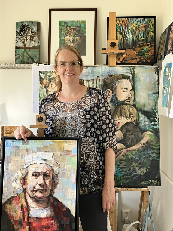 Saskia Obdeijn (1981) is beeldend kunstenaar en docent in Zutphen. Ze werkt veel met acrylverf en collage en diverse druktechnieken, zoals gelprint.