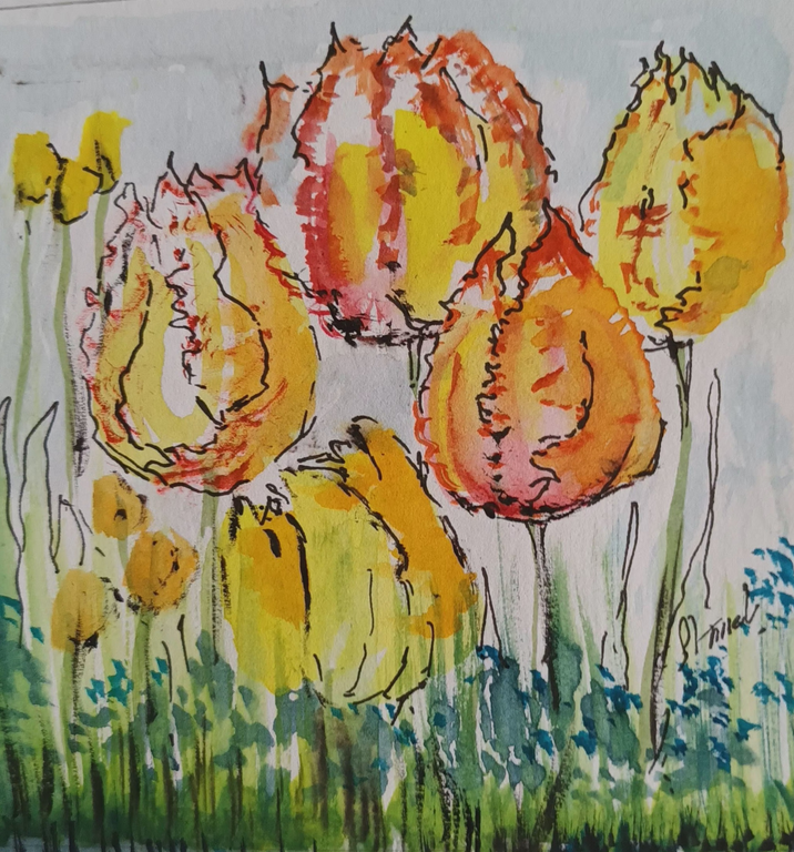 Geïnspireerd door de natuur waarbij de diverse jaargetijden mij doen aanzetten tot het maken van aquerellen.