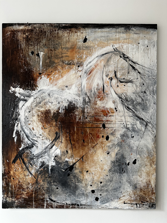 'In mijn kunst balanceer ik tussen het sturen met mijn handschrift en het ontvangen van wat de materialen teruggeven. Een spannend proces!'