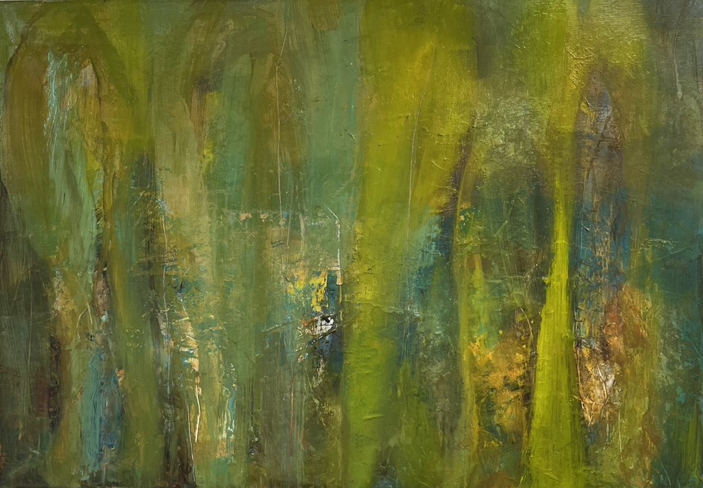 ANJA TEUNISSE Ik schilder beelden die ontstaan vanuit mijn binnenste. Onbewust is de natuur altijd mijn inspiratiebron, beelden van het hooggebergte zitten vaak voor op mijn netvlies.