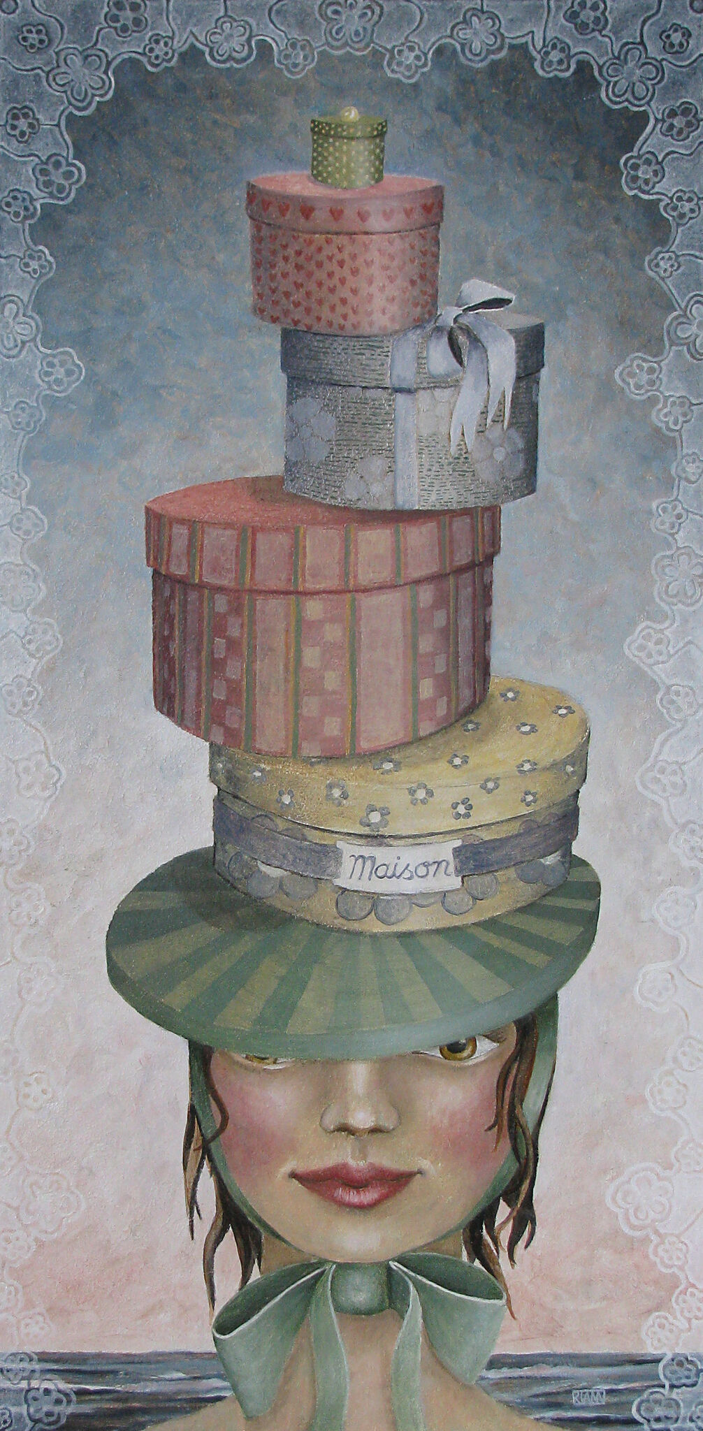 Strand Figuur Olieverf Hoed Dozen Realisme Kleur Cadeau Kado Hoeden Cadeautje Poetisch Strik Poetisch-realisme Riann