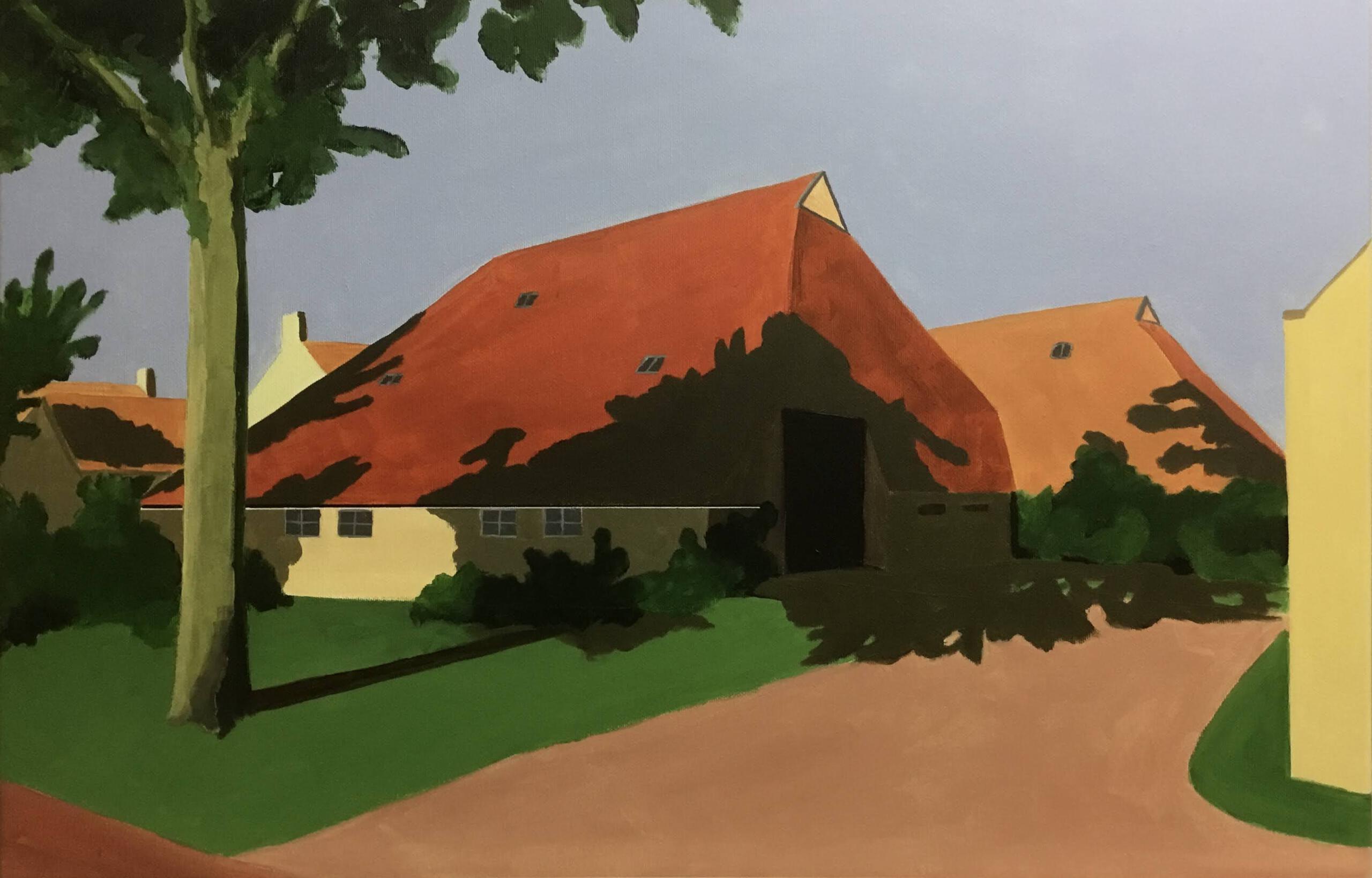 Een warme septemberdag in Nes op Ameland, de schaduwen reiken ver. Dit werk werd door Nationaal Atelier verkozen tot werk van de maand mei 2021.