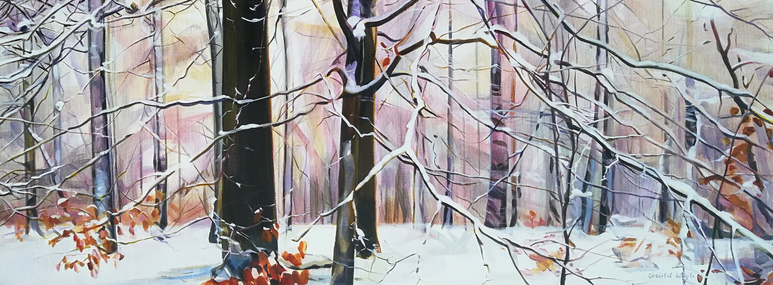 Wit Acryl Natuur Sneeuw Bomen Winter Bos Wandeling Koude Winterwandeling Weyts