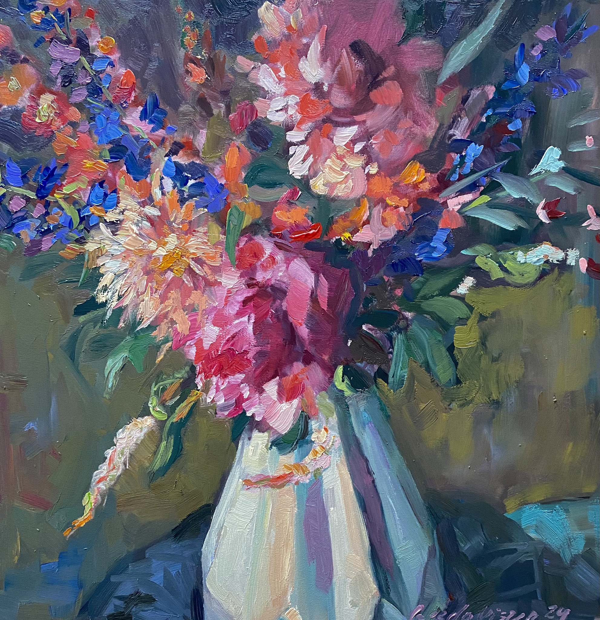 Kleurenpracht in bloei (2024) Olieverf op paneel | 40 x 40 cm