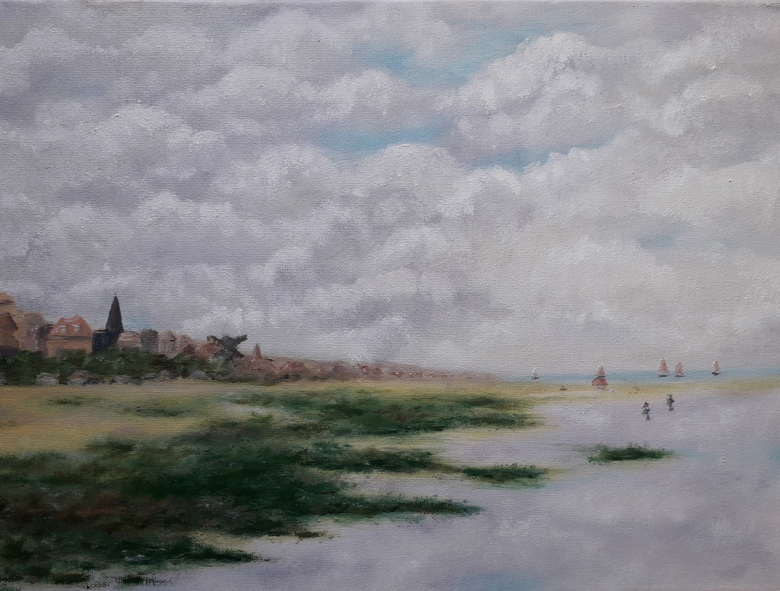Schilderij Zee Landschap Olieverf Dorp