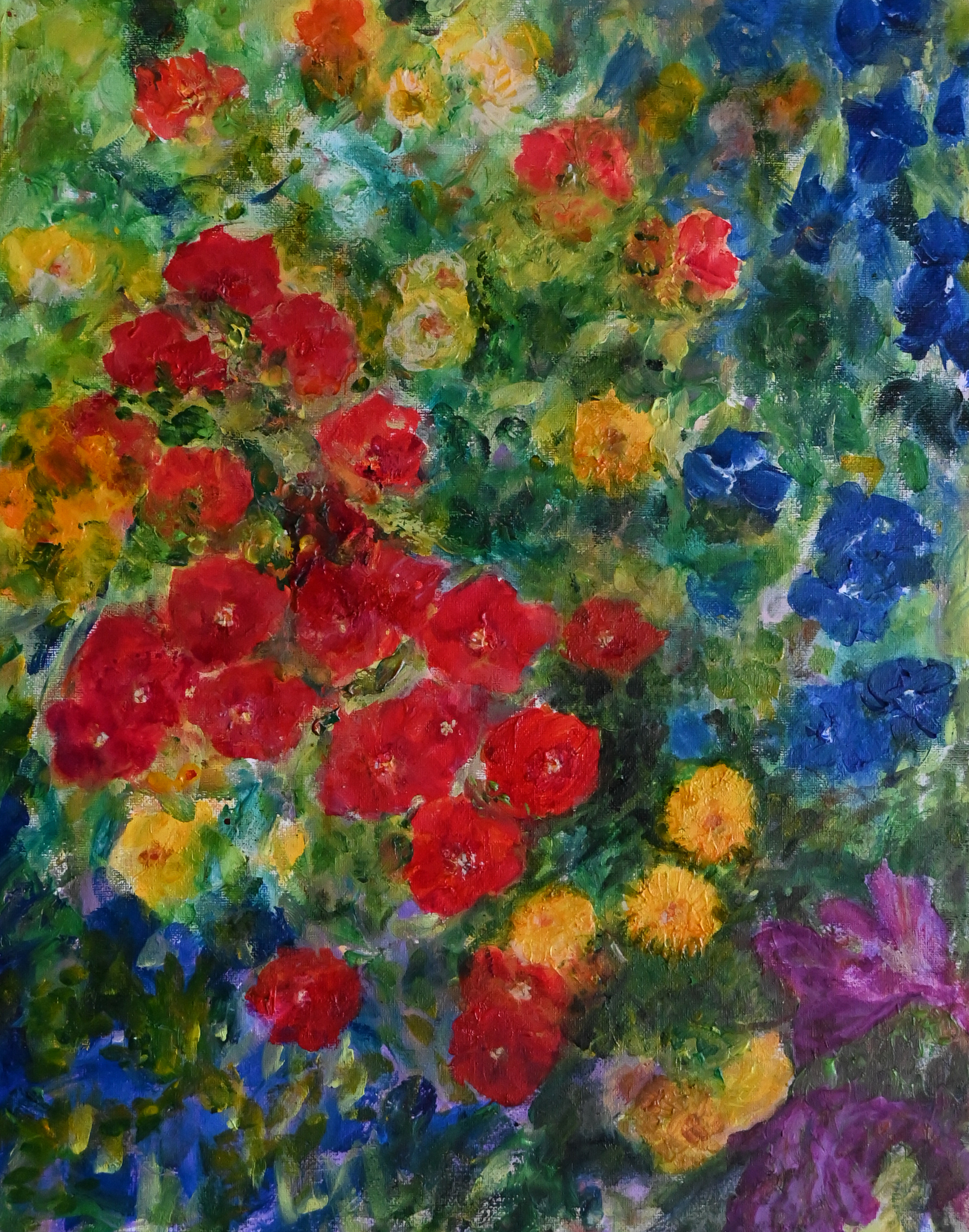 Rode Bloemen Blauwe Gele