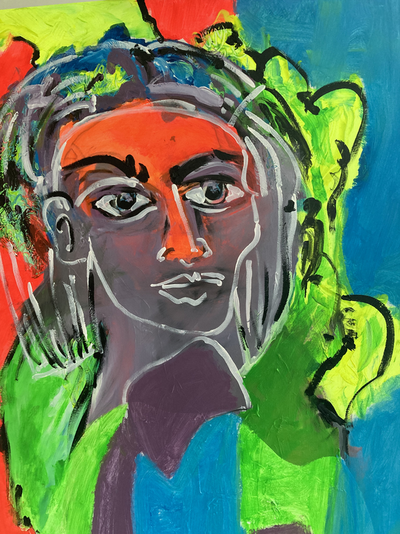 Acryl Op Doek Portret Kleurrijk Abstraherend
