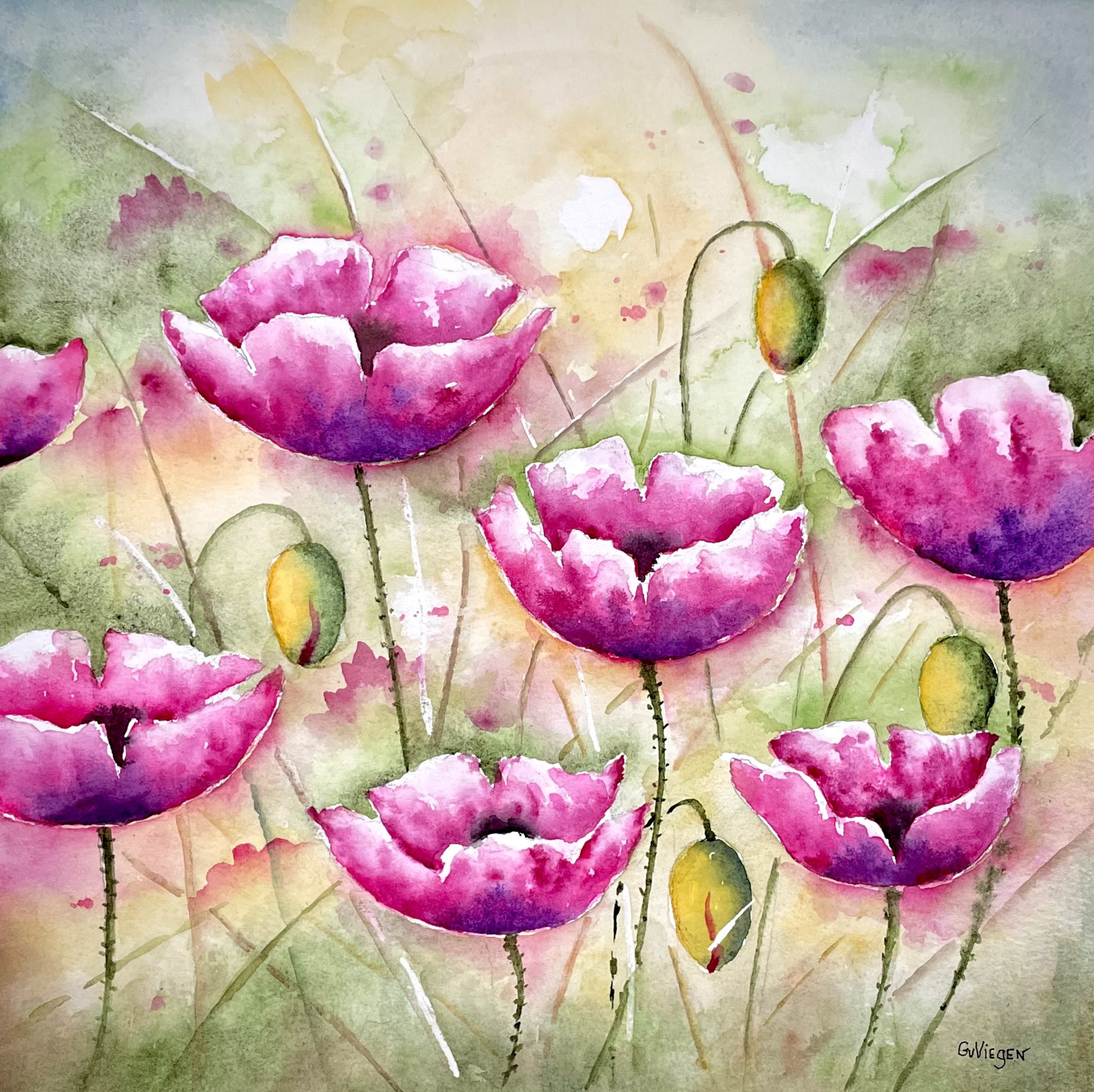 Aquarel Watercolor Bloemen Paars Papavers Tuin Natuur Zomer Klaproos